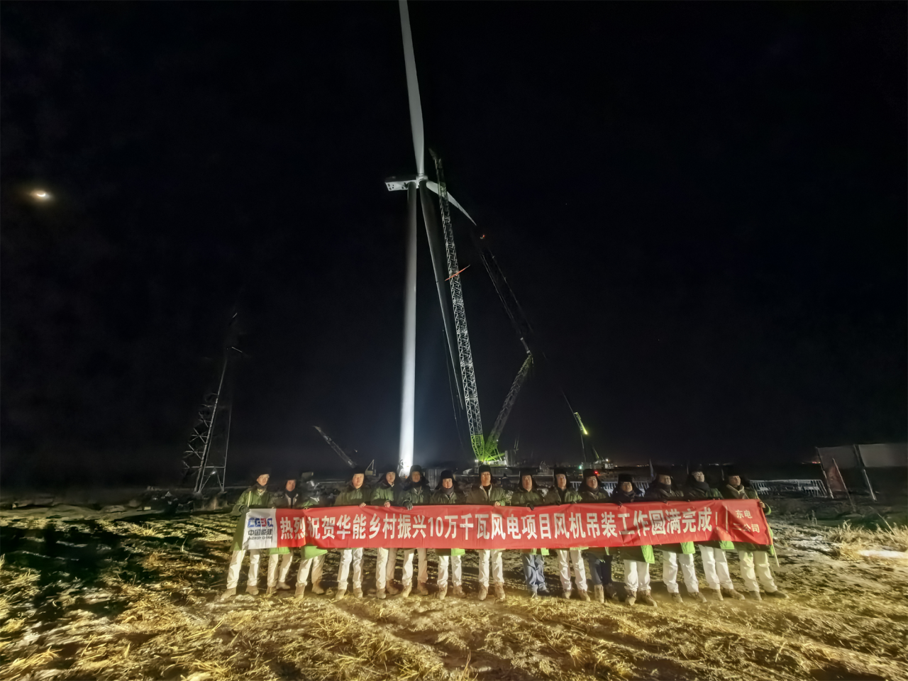 由于該項目機位分布廣,阻工現象多,運輸條件差,且正值冬季,給風機吊裝工作帶來了不小的挑戰。面對挑戰,項目團隊迎難而上,積極采取應對措施,根據風向和風力變化靈活調整吊裝時間;加強對施工人員的安全培訓和教育,配備齊全防寒保暖裝備和安全防護措施。同時,設立攻關小組,積極協調各參建單位,保證施工現場“貨到即用,吊必成功”的狀態。